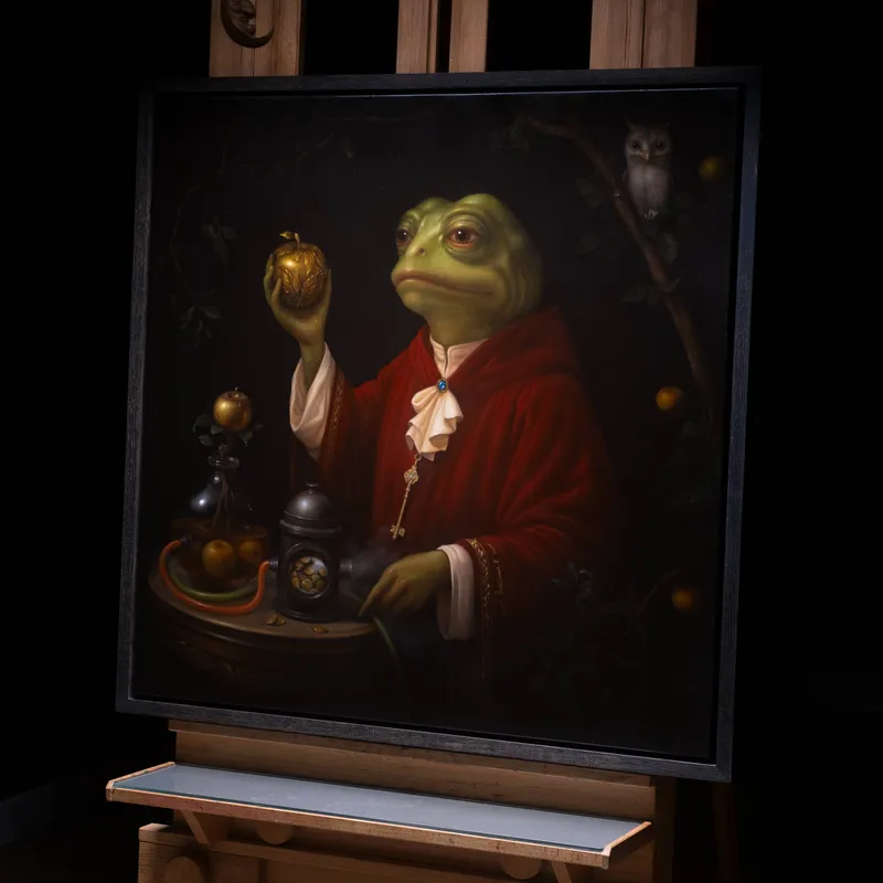 Buridanova's work has been collected by prominent figures in the Bitcoin and digital art communities and exhibited internationally. Based between Russia and Europe, she continues to explore the intersection of historical painting traditions and the visual languages emerging from online spaces. Mysteria Memetica represents her most comprehensive exhibition to date, showcasing the technical mastery and conceptual depth that have made her one of the most sought-after artists working at the crossroads of fine art and internet culture.